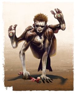 representaciones: monstruo humanoide con ojos en las plantas de sus pies