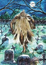 Iconografía: ser cubierto con un paño o pelo bien largo que le cubre el rostro