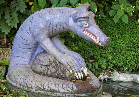 representaciones: con la mitad superior de su cuerpo como la de un cerdo, y la mitad inferior como una serpiente