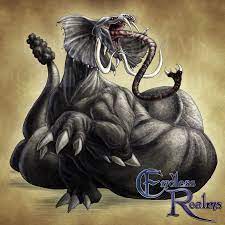 representaciones: como una especie de elefante gigante con cola de serpiente