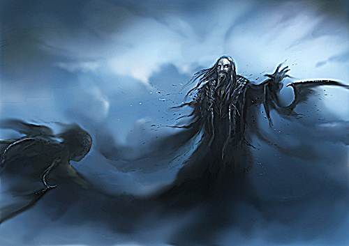Iconografía: hombre con un casco, un carro oscuro, a veces en un trono de ébano