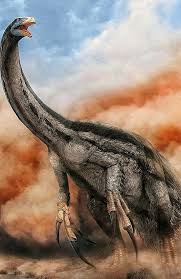 representaciones: un reptil gigante bípedo con cuello largo, con largas garras en sus patas frontales
