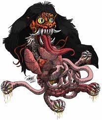 representaciones: como una cabeza voladora con entrañas colgando; con una lengua muy larga y dientes afilados