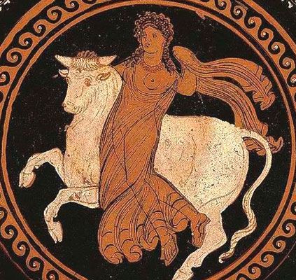 iconografía: un toro gigante que sostiene a la Tierra en su espalda. A veces, con humanos a su alrededor