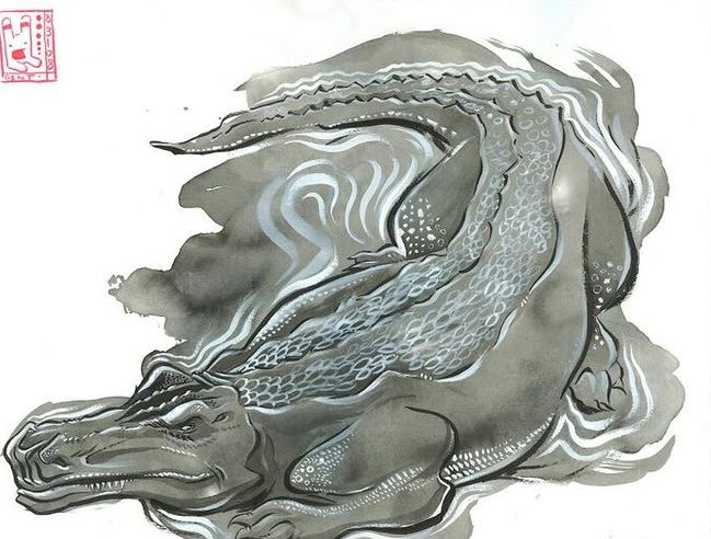 representaciones: como un híbrido entre cocodrilo, serpiente o tiburón, a veces con forma de dragón