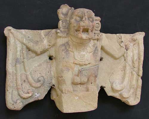 Iconografía: figura antropomórfica con cabeza de murciélago y alas.